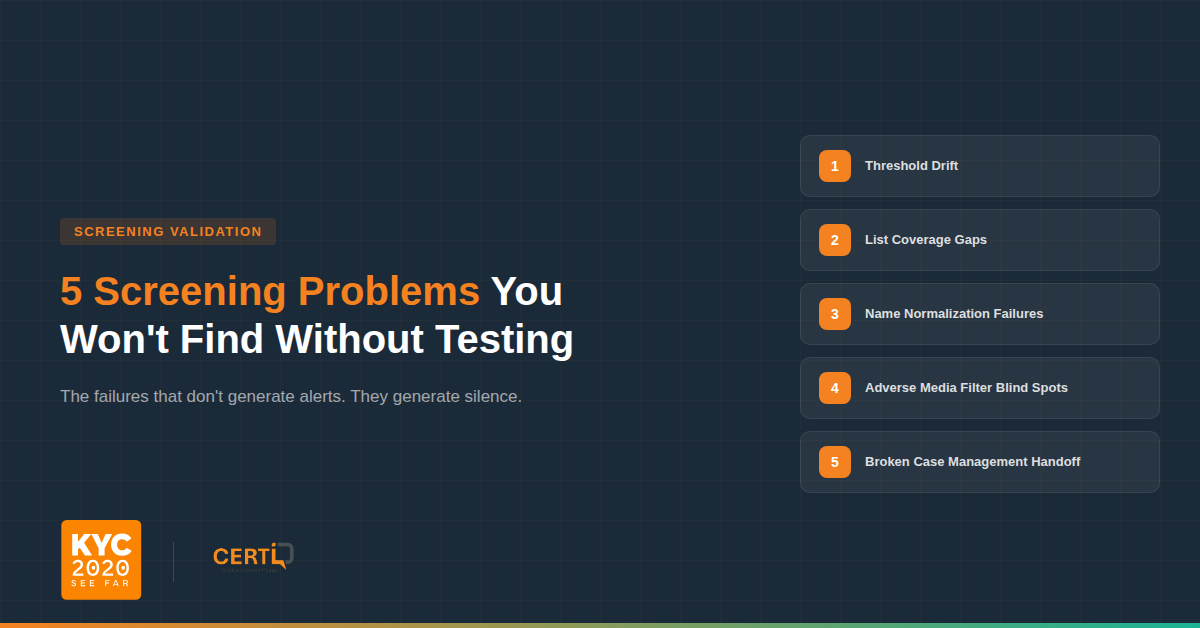 Your screening tool is generating alerts and your team is reviewing them. From the outside, the system looks like it’s doing its job. The problem is the failures you can’t see. The ones that don’t produce an alert. They produce…